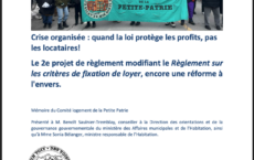 Les indices d’augmentation de loyer du TAL sont sortis. Ils sont élevés, plus encore que l’année passée qui était sans précédent. On parle d’un pourcentage de 5,9% pour un logement non chauffé et de 5,5% pour un logement chauffé à l’électricité, en plus du pourcentage des taxes municipales et scolaires et des travaux majeurs, […]